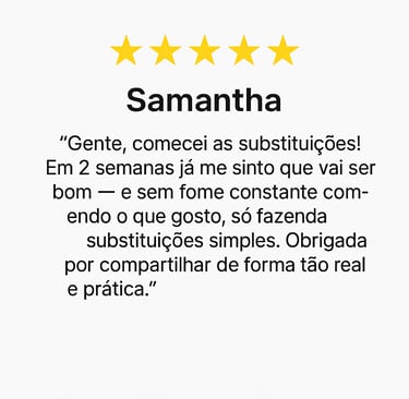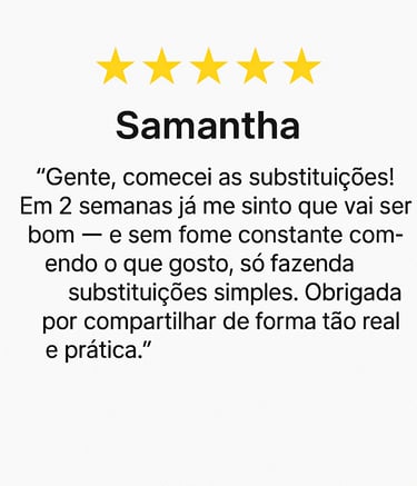 Com as substituições e equilíbrio entre nutrientes, você passa a emagrecer de forma natural, sem dietas restritivas — e, o mais importante, mantém o peso a longo prazo.