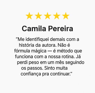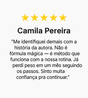 Foi quando desenvolvi os 10 passos para emagrecer de verdade — um guia simples e acessível, que transformou não só meu corpo, mas minha autoestima, minha rotina e minha vida.
